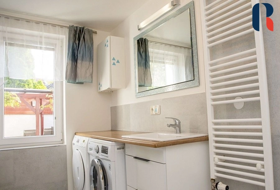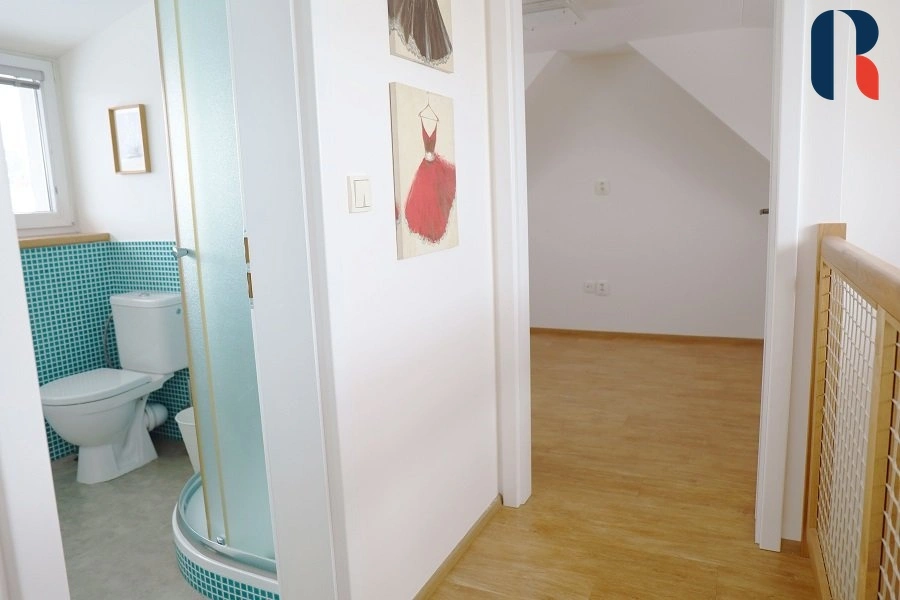Samostatně stojící patrový dům 4+kk s podlahovou plochou 97 m2 disponuje 4 samostatnými pokoji, 2 koupelnami s wc a technickou místností. Interiér je prakticky dispozičně řešen, aby bylo využito každé místo ( vybavení na míru, vestavěné skříně), dům tak působí prostorně a zároveň útulně. Velkou výhodou je dostatek přirozeného světla v celém domě, ticho a přímý vstup z obývacích prostor na zahradu.
