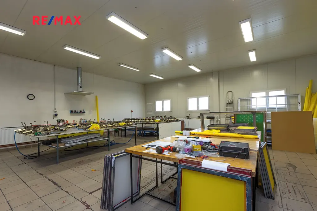 Plechová hala je samostatně stojící (výstavba v r. 1992), nepodsklepená o 1NP, se dvěma samostatně užívanými prostory, sloužící ke skladování. V přední části se nachází vytápěná vestavba. Užitná plocha je 651 m2 (vytápěná část 100 m2), zastavitelná plocha 1.660 m2. Podlahy jsou keramika/beton, vytápění plynové, elektroinstalace 230/400 V.