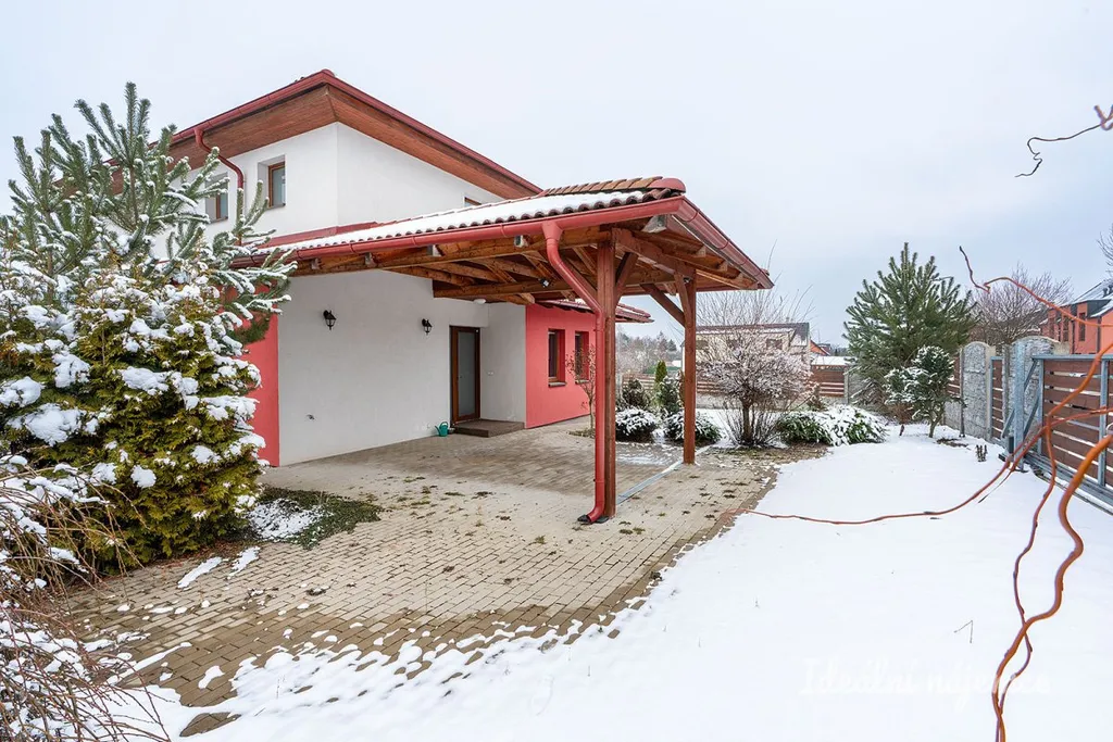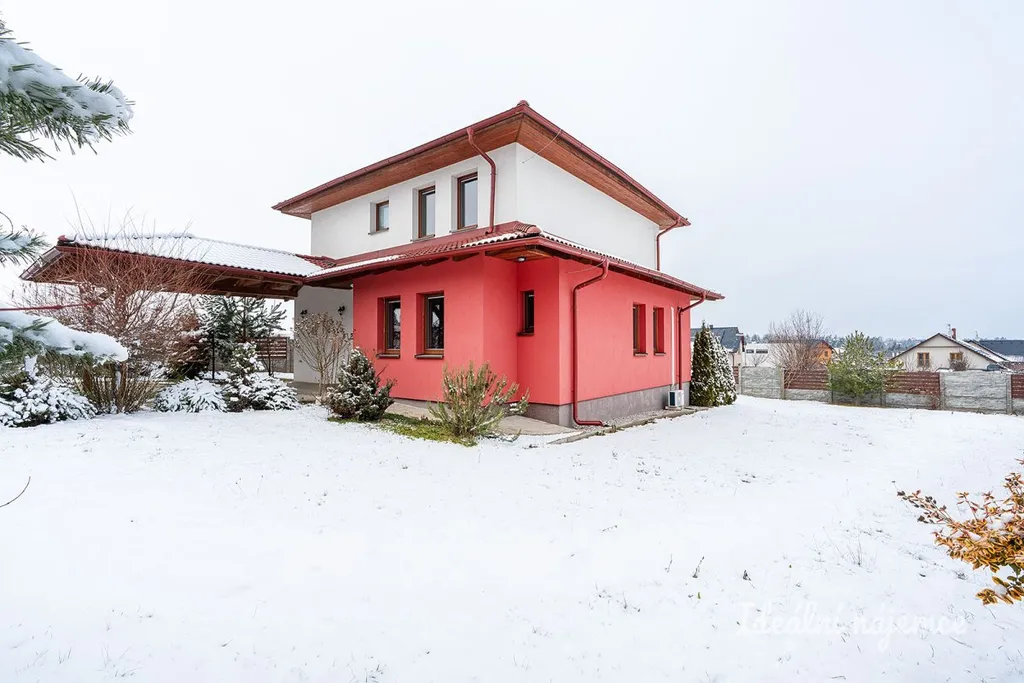 Interiér domu je nabízen jako částečně vybavený, což budoucím nájemníkům poskytuje skvělou příležitost doladit si domov podle vlastního vkusu a potřeb. Srdcem domu je samostatná kuchyně s jídelním koutem, která je plně vybavena všemi moderními spotřebiči včetně lednice s mrazákem, elektrické trouby, varné desky, myčky a digestoře. Světlý obývací pokoj disponuje pohodlnou sedací soupravou, konferenčním stolkem a praktickým úložným prostorem. Dispozici dále doplňují tři samostatné pokoje, které lze variabilně využít jako ložnici, dětské pokoje nebo pracovnu. Komfortní koupelna je vybavena vanou i sprchovým koutem, přičemž toaleta je pro větší soukromí umístěna samostatně.
