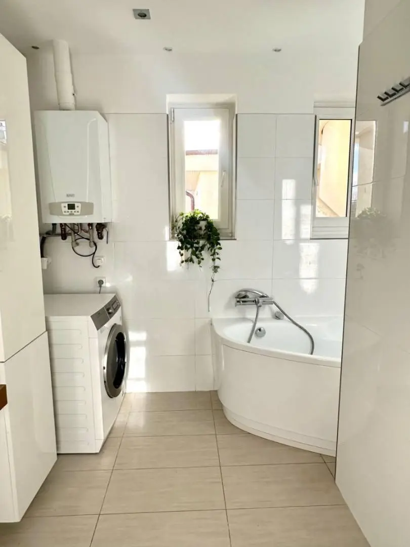 Koupelna je prostorná a komfortní, vybavená vanou. Toaleta je řešena samostatně.