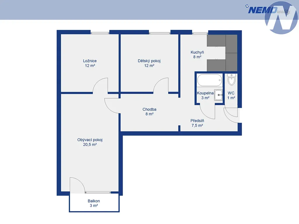 Byt je hezky dispozičně řešen. Nabízí světlé a prostorné pokoje, které poskytují dostatek místa pro rodinný život i pohodlné bydlení. Velkou předností je zcela nová kuchyňská linka na míru, která spojuje moderní design s kvalitním zpracováním. Zděné bytové jádro s vanou a samostatné WC přináší komfort a praktičnost pro každodenní využití. Součástí bytu je také balkón 3 m2, ideální pro chvíle odpočinku, a hned dva sklepy 5 m2, které nabídnou dostatek úložného prostoru.