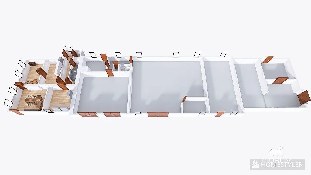 Podsklepený dům je ve velmi dobrém stavu se 3 nadzemními podlažími o celkové výměře přibližně 250 m2. Přízemí může sloužit jako kanceláře či obchodní prostory a 2 patra poskytují plnohodnotné bydlení, případně další administrativní zázemí. Na každém patře se nachází WC, přízemí a 1. patro je vybaveno kuchyní, 1. a 2. patro disponuje vlastní koupelnou. Dispozice tak umožňuje flexibilní využití – bydlení, pronájem (vč. kanceláří) či kombinaci všeho společně.