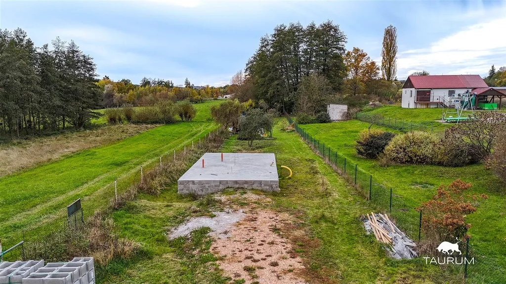 Součástí nabídky je kompletní stavební dokumentace (vč. projektové dokumentace) a vydané stavební povolení, přičemž stavba byla již zahájena a na pozemku se nachází připravené základy. Předpokládá se stavba s nadzemním podlažím a podkrovím o užitné ploše přibližně 100 m2.