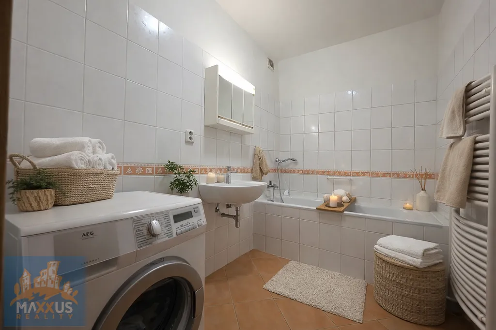 Byt je díky velkému množství oken velmi světlý a vzdušný. Zároveň je byt příjemně teplý, takže není potřeba mít radiátory nastavené na vysoký výkon, což se pozitivně projeví na nákladech na bydlení. Částečné vybavení bytu může zůstat, případně je možné byt pronajmout i bez něj – dle dohody.