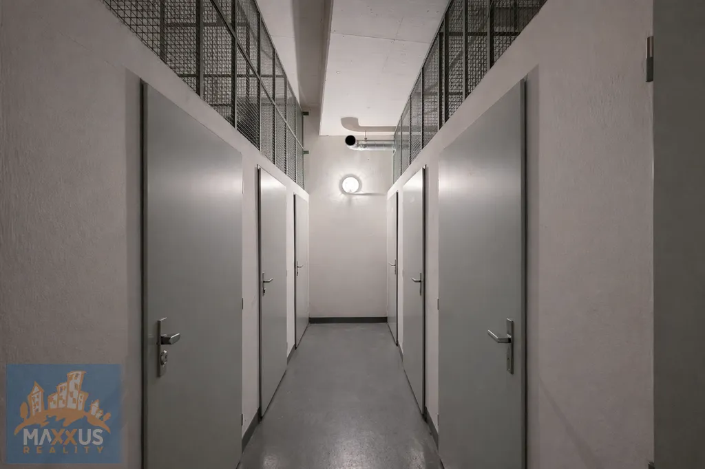 K bytu náleží prostorná sklepní kóje v suterénu domu. Celý dům je zabezpečen kamerovým systémem 24/7 a působí udržovaným a klidným dojmem.