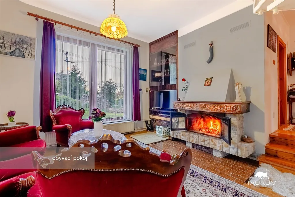 • dominantou prostoru je krb s tepelným výměníkem,