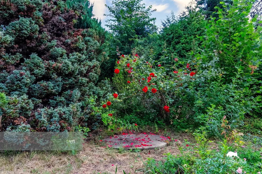 Pozemek okolo chaty je kompletně oplocený, lehce svažitý, obrostlý keři, což umožňuje absolutní dostatek soukromí.