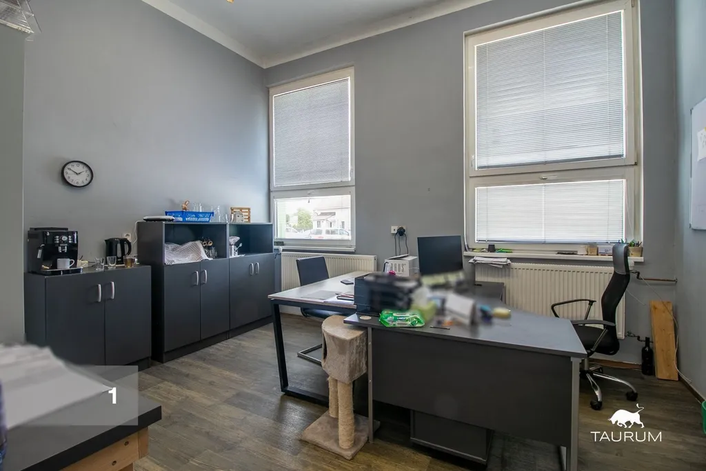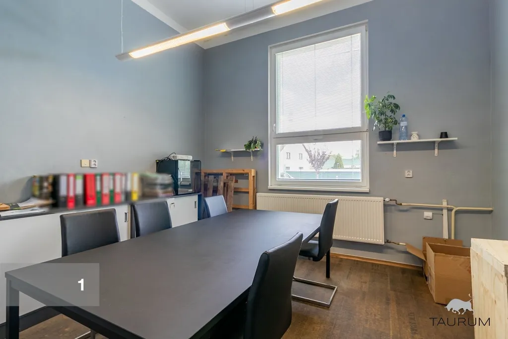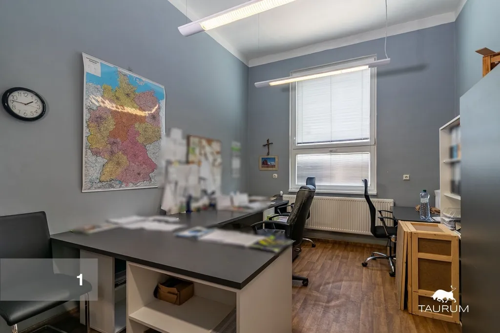 1 přízemní zděná administrativní budova s kancelářemi a zázemím (šatny, sprcha, wc, kuchyňka) o celkové podlahové ploše 405 m2, budova je ve vynikajícím stavu