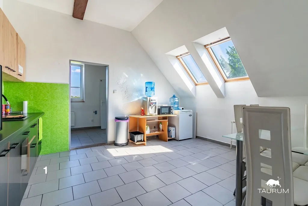 2 kancelářské prostory ve zděné budově o celkové výměře 124 m2, velmi dobrý stav, kuchyňka, umývárna