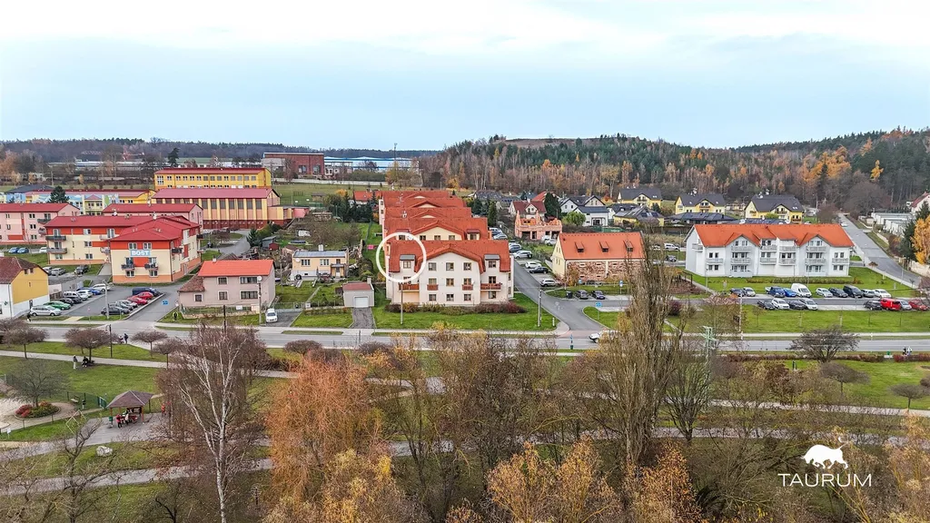 Byt se nachází ve skvělé lokalitě, jen pár minut jízdy od dálnice D5 (na okraj Plzně se dostanete za cca 18 min. autem). V blízkosti je také autobusová zastávka (156 m) a vlaková zastávka (272 m), a je tedy zajištěna velmi dobrá dopravní dostupnost do Plzně. Hned vedle domu je parkoviště a naproti park s herními prvky pro děti. Obec Tlučná nabízí bohatou občanskou vybavenost – mateřskou a základní školu, obecní úřad, poštu, obchody, restaurace, koupaliště a další.
