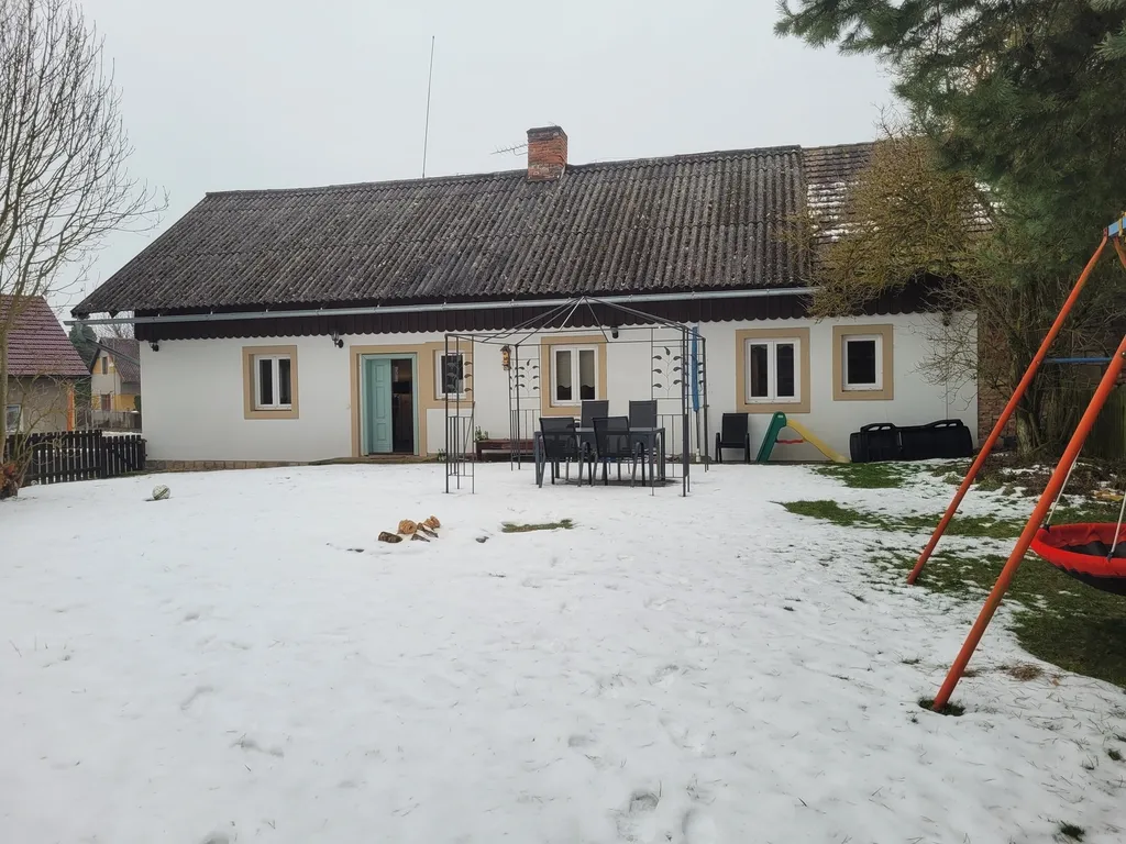 Slunná zahrada nabízí terasu, houpačku a venkovní ohniště. Spojeny za domem se nachází prostorná stodola v původním stavu. Je zde možnost vybudování druhé bytové jednotky nebo individuálního dispozičního řešení. Střecha je původní a ve špatném technickém stavu a doporučuje se její výměna v krátkodobém horizontu (odhad nákladů 400–500 000 Kč.