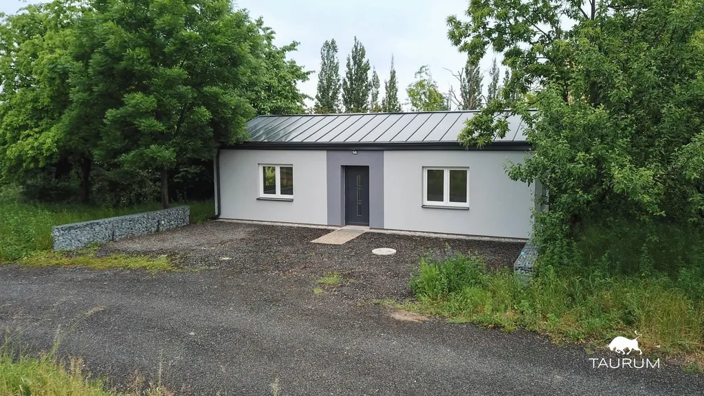 Dům je zděný, z Ytongu o šíři 25cm a zateplen je 14cm šedým polystyrenem, na betonové základové desce. Je napojen na obecní vodovod, elektřina je 230V (k dispozici jsou 3 fáze, jen na 400V není vyhotovená zásuvka). Kanalizace je řešena jímkou o objemu 6 m3, která je přímo před domem. Okna jsou plastová, podlahy vinyl (v místnostech) a dlažba (předsíň a koupelna s wc). Střecha je plechová s 30 cm foukanou izolací. Ohřev teplé vody zajišťuje bojler, vytápění je řešeno přímotopy v místnostech.