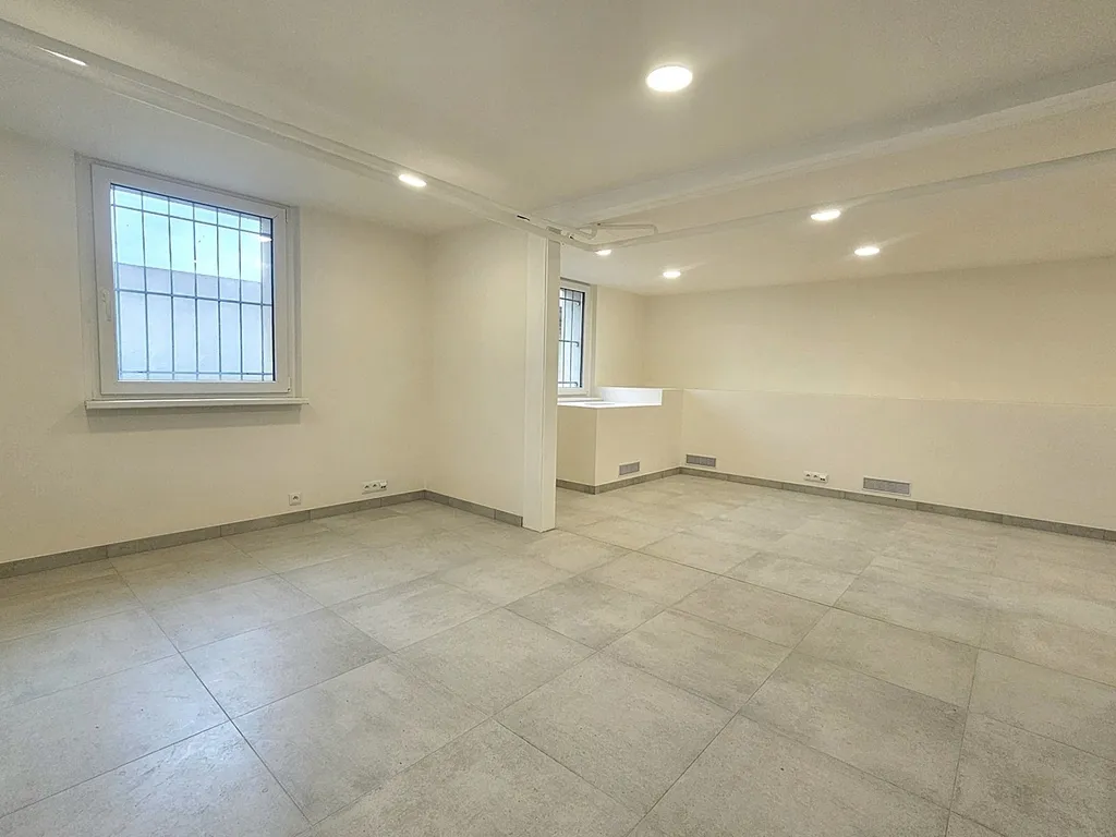 Prostor je po kompletní, právě dokončené moderní a vkusné rekonstrukci. Prostor sestává ze 2 otevřených místností, každá má okno zabezpečené mřížemi. U vchodových dveří je vybudována příprava na případnou kuchyňskou linku. V koupelně je sprchový kout, umývadlo se zrcadlem a vstup na samostatné WC. Na podlaze je velkoformátová dlažba. Prostor je vytápěný automaticky a zdarma díky rozvodům dálkového topení, které je umístěné v soklu s průduchy v zadní části prostoru. Díky tomu je v prostoru příjemné teplo a sucho bez měsíčních nákladů za vytápění. Parkování je možné na ulici (modré zóny) a nebo je možné si pronajmout až 2 garážová stání v suterénu sousedního domu.