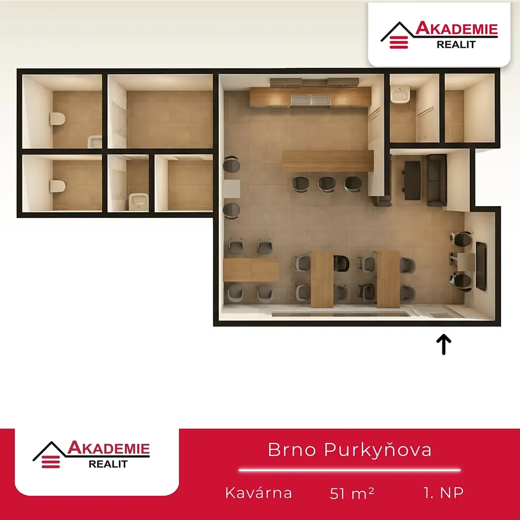 Pronájem komerčního prostoru v bytovém komplexu EDEN ul. Purkyňova, Brno - Královo Pole. Komerční prostor je možné pronajmout za účelem kanceláře a pronajímatel může zařízení kompletně demontovat. Součástí prostoru je technické zázemí, 2x WC a šatna pro zaměstnance. Jedná se o velmi zajímavé komerční místo s výlohou s možností okamžitého využití.