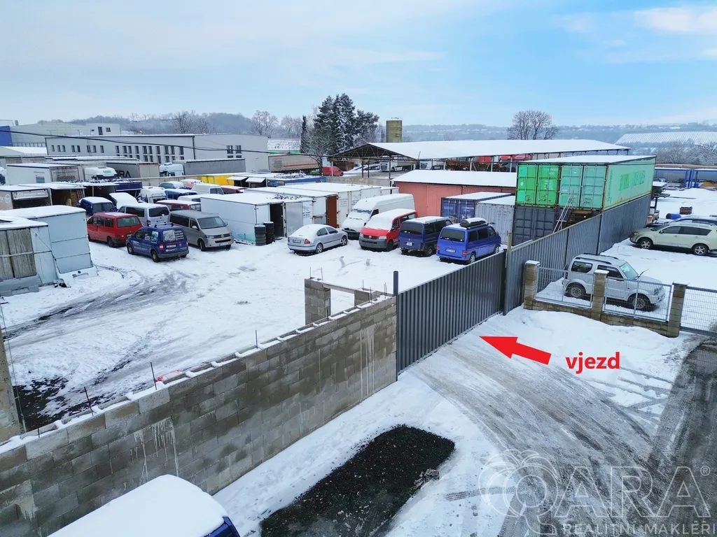 zpevněná plocha za halou o výměře 965 m², aktuálně pronajatá (výpovědní doba 3 měsíce) – vhodná pro manipulaci, skladování nebo budoucí rozšíření provozu