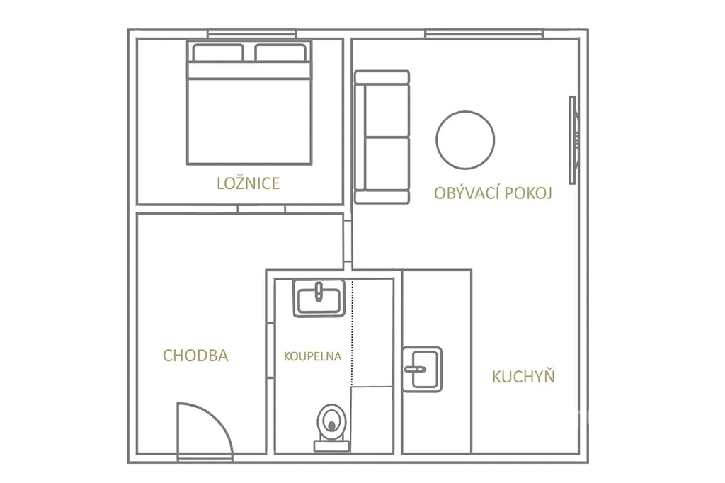 • Obývací prostor a ložnice jsou i s vizualizacemi jak by mohly zařízené vypadat
