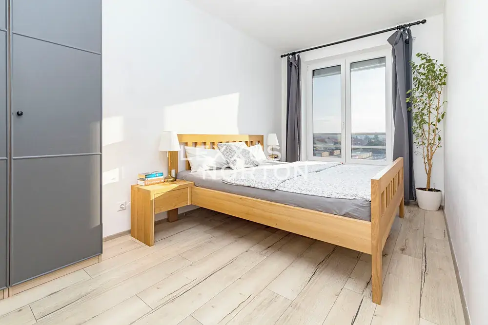 Nabízíme k prodeji jihovýchodně orientovaný 3+kk byt, který je dispozičně řešen jako bezbariérový. Dominantou bytu je světlý obývací pokoj (38 m2) s výstupem na terasu (9 m2) a výhledem do okolí. Součástí obývacího pokoje je velký kuchyňský kout s vestavěnými spotřebiči. Dále se v bytě nachází ložnice (13 m2) a dětský pokoj (14 m2). Prostorná chodba s maximálním využitím pro vestavěné skříně, koupelna s vanou, komora a samostatné WC. K bytu náleží sklep a venkovní parkovací stání. Pro svoji polohu v rámci Kralup je vhodný i na investici či pronájem.