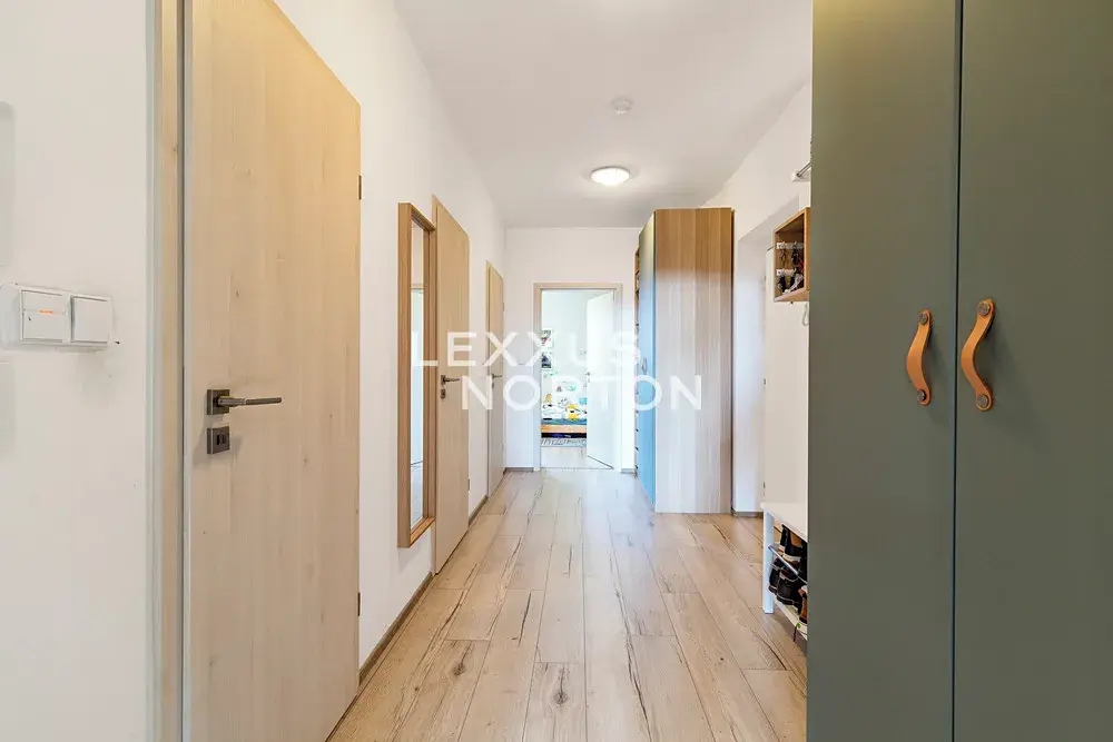 Byt je velmi dobrém stavu a je vybaven kuchyňskou linkou včetně spotřebičů. Na podlaze plovoucí podlahy a dlažba, interiérové dveře s obložkami, okna plastová. Byt má šikovné dispoziční řešení a dostatek úložného prostoru. K dispozici venkovní parkovací stání a sklep v 1.PP domu.