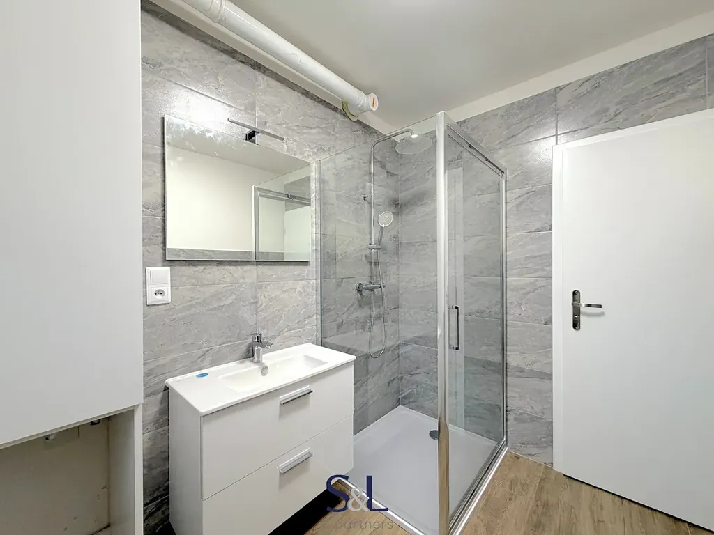 Koupelna disponuje sprchovým koutem, WC a přípravou na pračku a sušičku.
