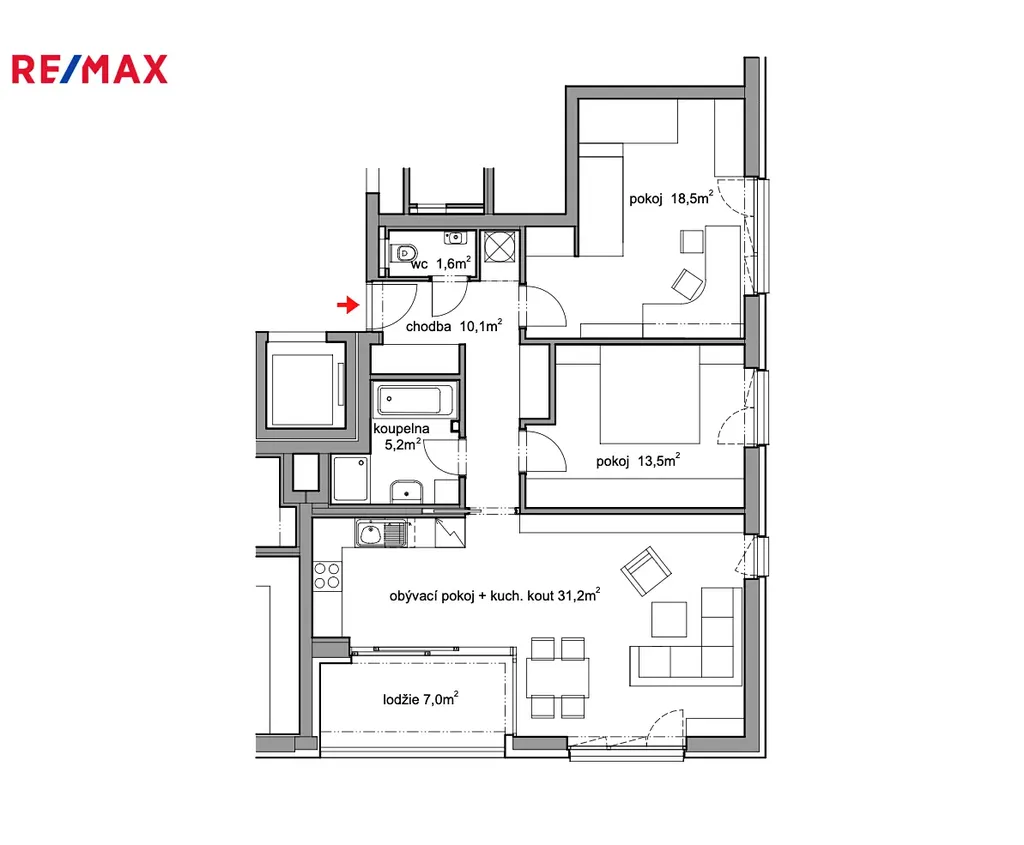 - Byt je navržen s důrazem na komfort moderního bydlení: