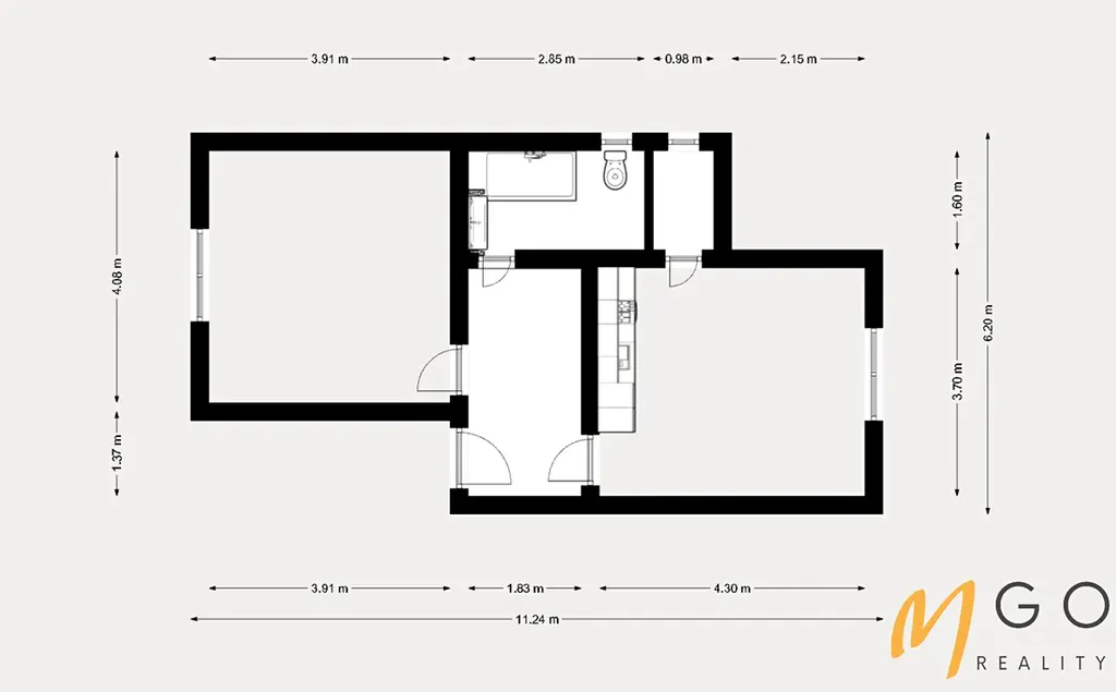 Byt má rekonstruovanou koupelnu a WC, zbývající prostory je možné upravit podle vlastních představ.
