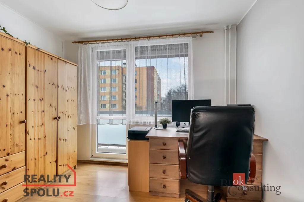Dispozice je praktická – tři samostatné pokoje, kuchyně, dostatek úložných prostor. Z jednoho pokoje je přímý vstup na balkon, kde si ráno dáte kávu a večer ticho. K bytu náleží také sklep o velikosti 2,7 m², takže kola, sezónní věci nebo archiv mají své místo.