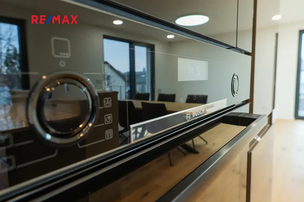 Byt je vybaven novou kuchyňskou linkou na míru včetně spotřebičů Bosch, klimatizací, zabezpečovacím alarmem a vestavěnými skříněmi. Součástí pronájmu je sklepní kóje a dvě venkovní parkovací stání. V domě je k dispozici společná místnost s pračkou a sušičkou. K bytu patří také společná zahrada s vlastním venkovním posezením a grilem.