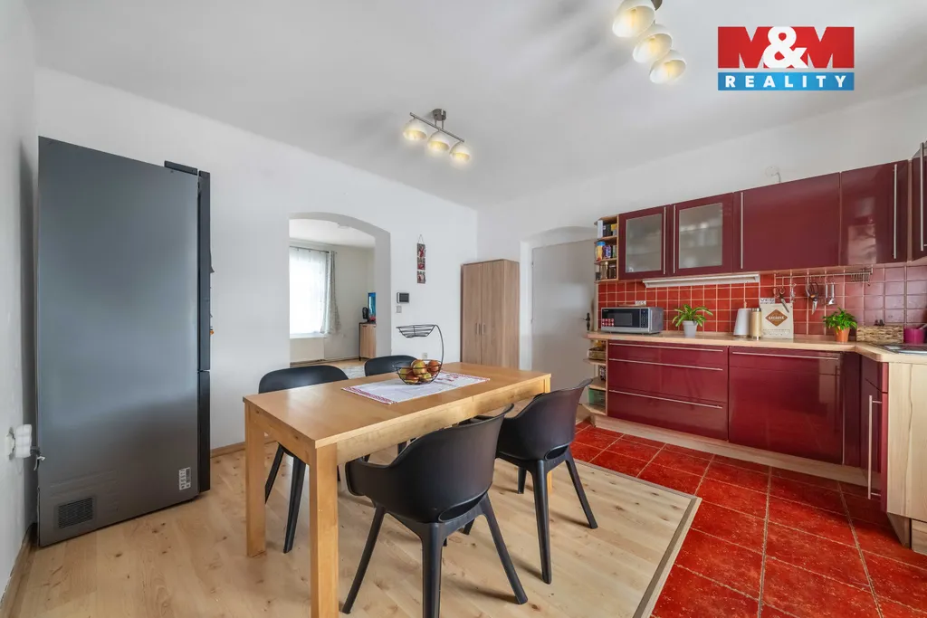Dispozice domu je 5+1 s možností rozdělení na dvě samostatné bytové jednotky. Další rozšíření obytné plochy umožňuje půdní vestavba a výhodou je také skutečnost, že dům je ze tří čtvrtin podsklepený. Poslední rekonstrukce proběhla v roce 2010. Vytápění je řešeno tepelným čerpadlem v kombinaci s kotlem na dřevo, ohřev teplé vody zajišťují solární panely. Dům je napojen na obecní kanalizaci. Součástí domu je uzavřený dvorek o výměře 122 m² vhodný k posezení či relaxaci. Manětín nabízí základní občanskou vybavenost a dobré spojení na Plzeň.