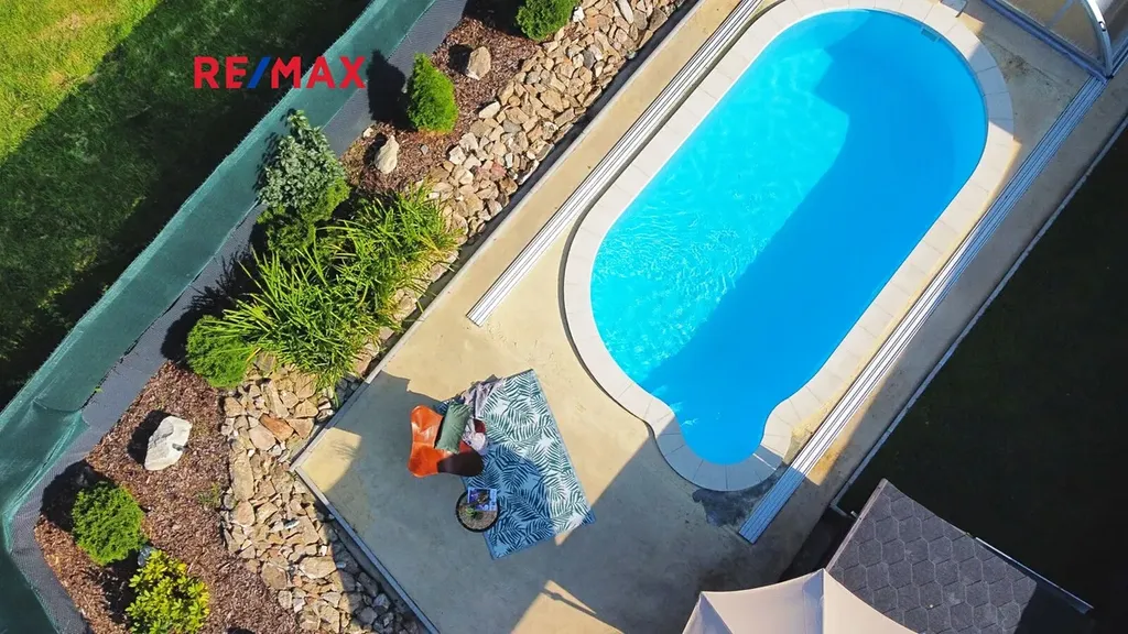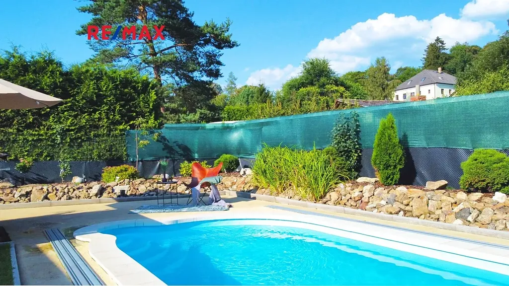 Vlastní příjezdovou cestou po průjezdu plně automatickými vraty se dostanete na zpevněné parkoviště za domem. Brána má i samostatné ovládání pro ubytované hosty. Prostorná zahrada vybízí k posezení u krbu pod dřevěnou pergolou, nebo novému využití dle přiložené vizualizace. Vaše hosty jistě příjemně překvapí krytý venkovní bazén o velikosti 18 m2 s integrovaným tepelným čerpadlem.