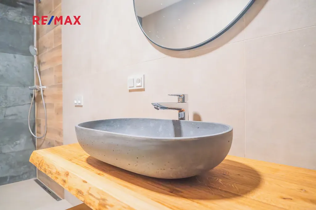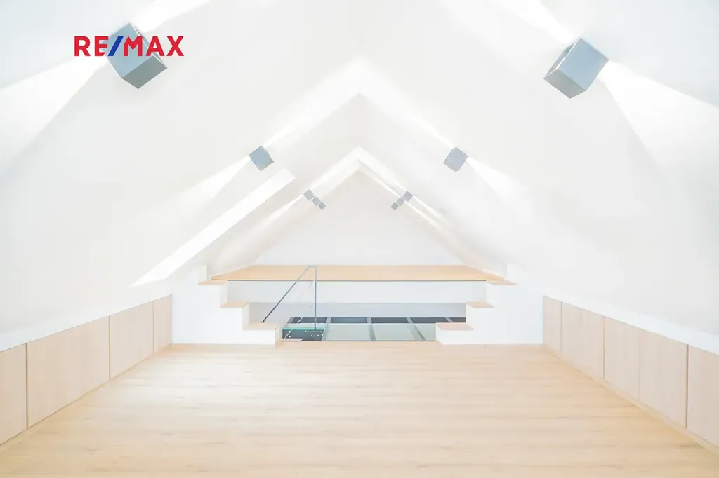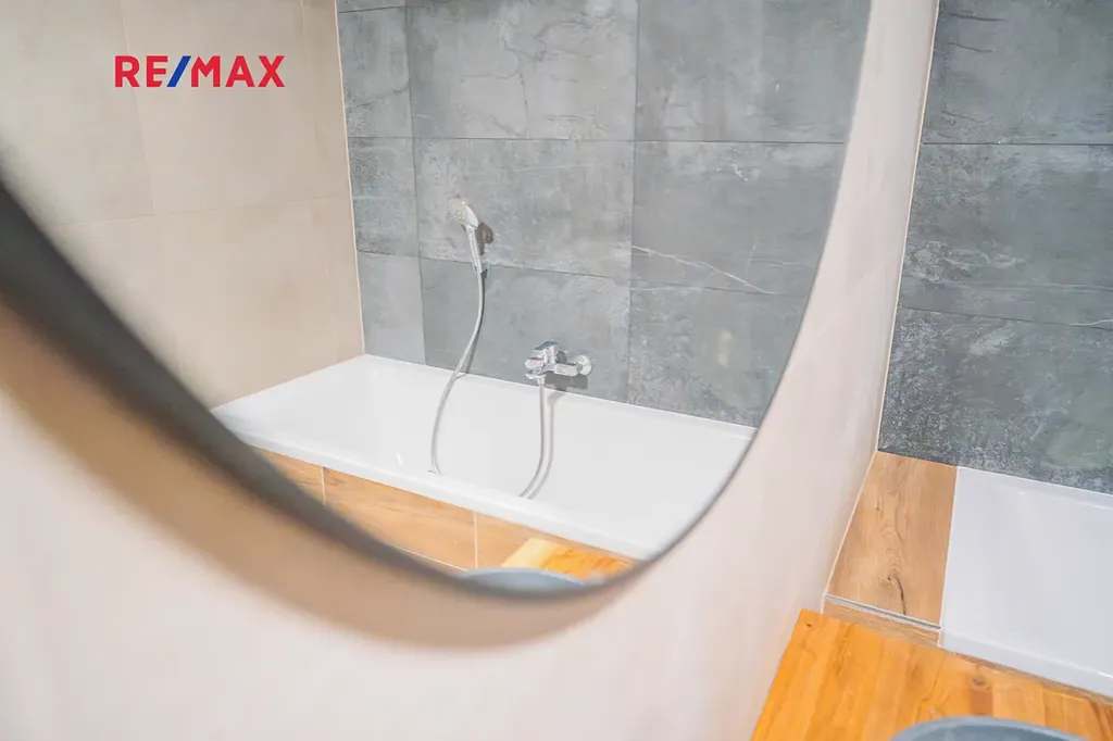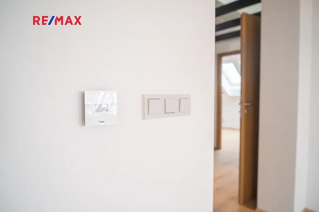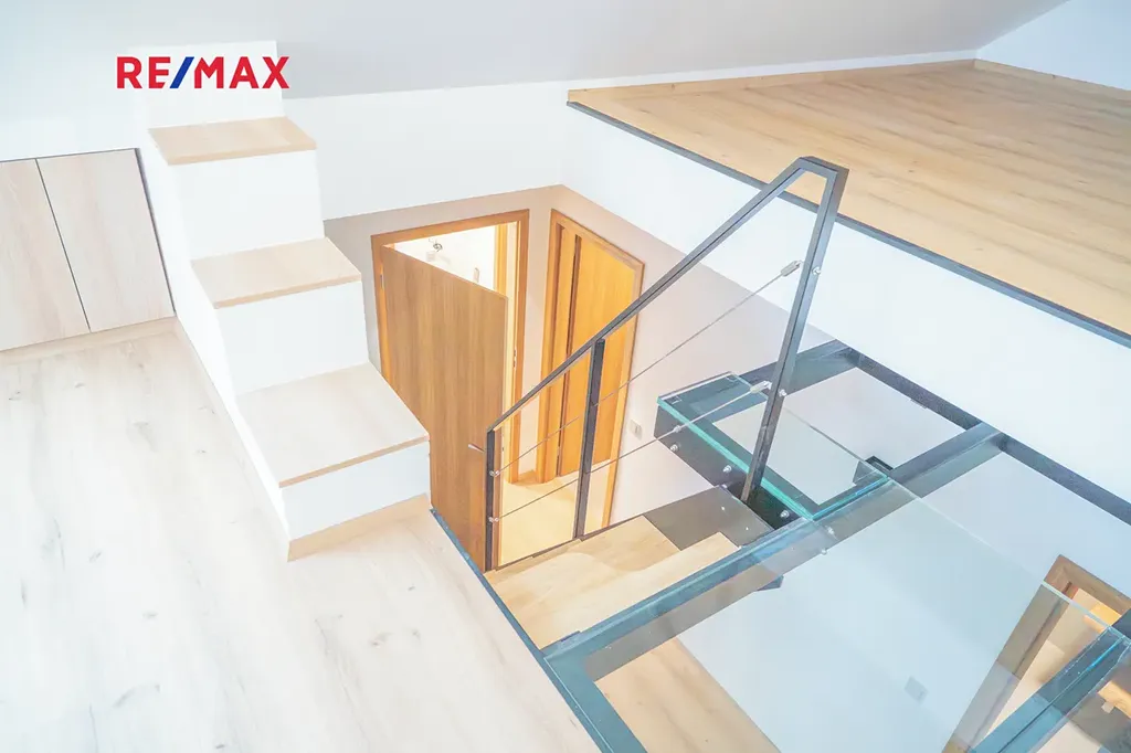 Na kuchyň navazuje stylový obývací pokoj, který v sobě krásně spojuje současný design a přiznané prvky dřeva — prostor působí vzdušně, ale zároveň příjemně útulně. V této části naleznete také samostatné WC, komoru a prostornou koupelnu s vanou i sprchovým koutem. Kromě toho jsou zde dva oddělené pokoje — skvělá volba pro dětské pokoje, pracovnu či hostinský pokoj.