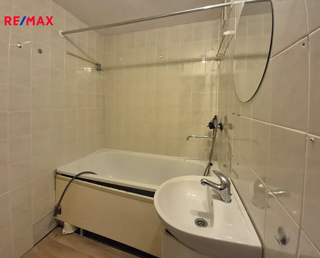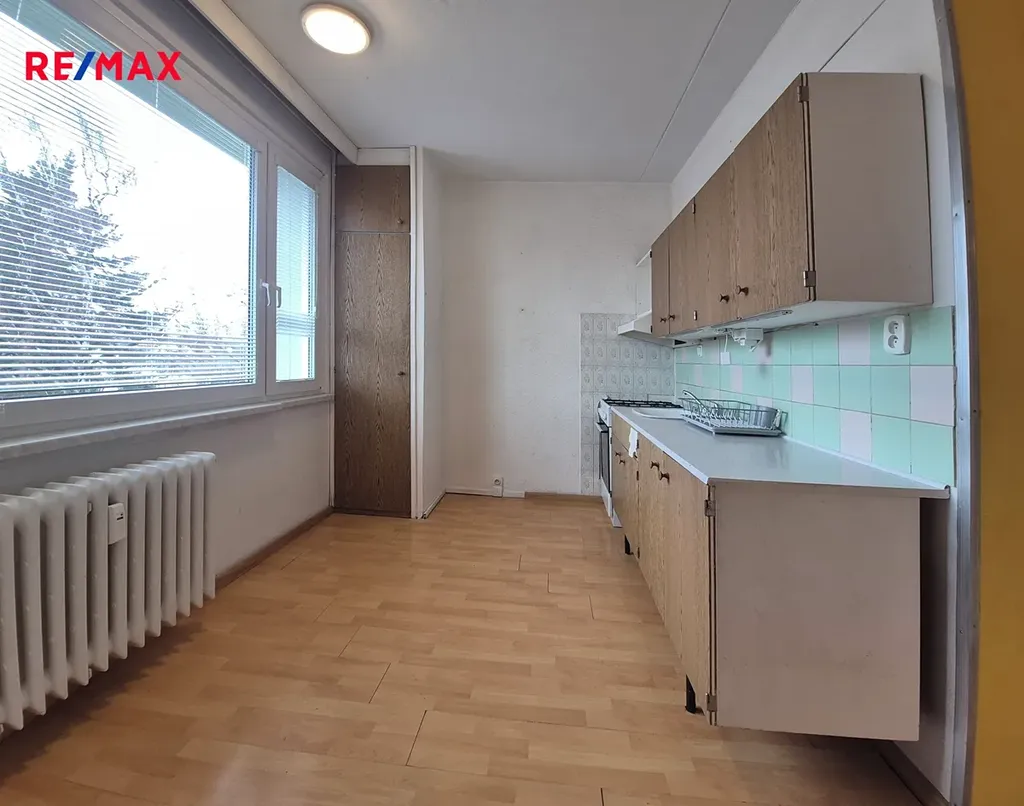 Byt je v původním stavu, má pouze nová plastová okna. Bytové jádro je původní, koupelna je obložena. Byt se sestává z předsíně, koupelny, WC, komory, obývacího pokoje, ložnice, kuchyně a zasklené lodžie. Pokoje nejsou průchozí.