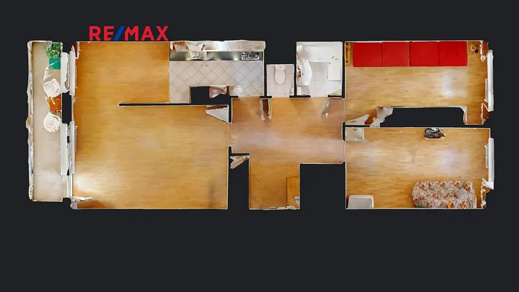 Dispozice je: obývací pokoj s východem do zasklené lodžie + kuchyňský kout, 2 samostatné pokoje, koupelna s vanou, toaleta, šatna, chodba s vestavěnými skříněmi.