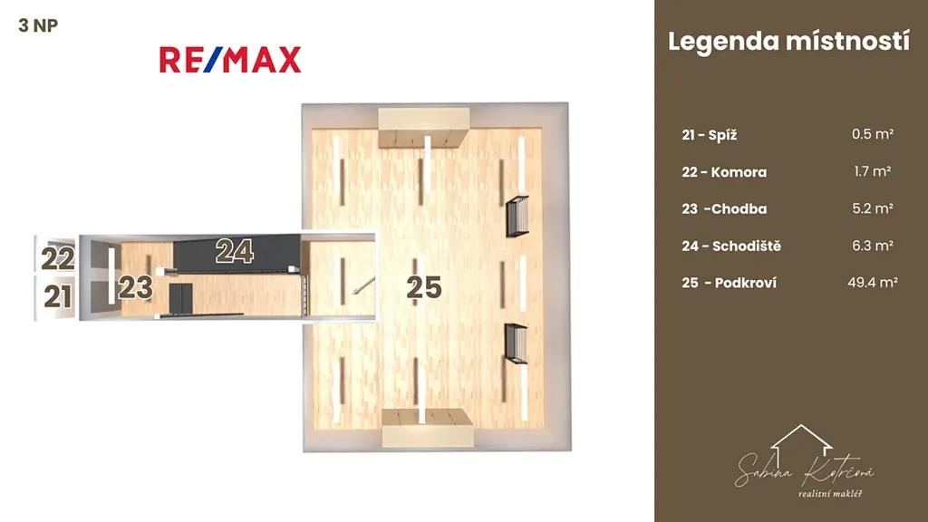 Okolí tvoří kultivovaná rezidenční čtvrť s výbornými sousedskými vztahy. Dům má navíc potenciál pro rozšíření o půdní vestavbu – nabízí se tak možnost vícageneračního bydlení, nebo zajímavá investiční příležitost. Díky své poloze, velikosti a variabilní dispozici je vhodný jak pro rodinné bydlení, tak pro kombinaci s podnikáním či pronájmem.