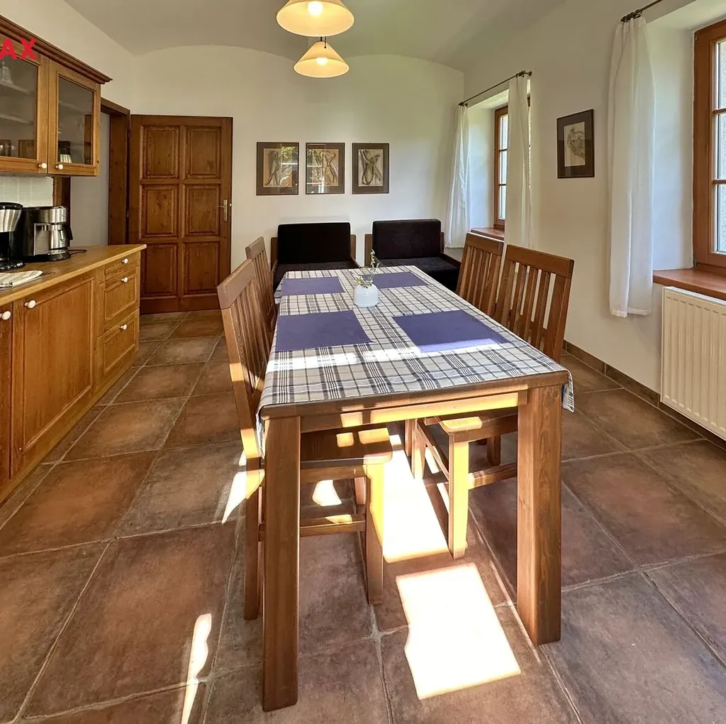 Veškeré zařizovací předměty nemovitosti zhotoveny na zakázku s využitím služeb místních řemeslníků, výsledky jejich práce vdechly nemovitosti neopakovatelnou útulnou atmosféru.
