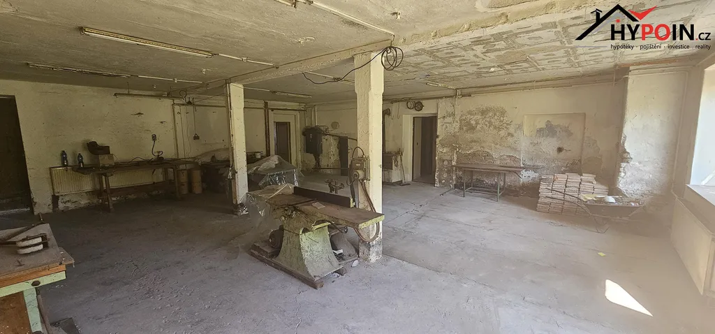 Součástí domu je truhlárna / dílny, dům je vhodný k rozsáhlé rekonstrukci nebo demolici.