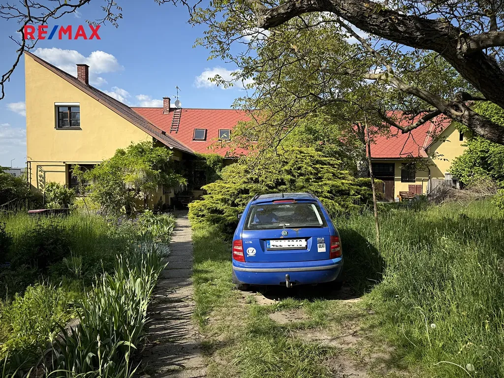 Vlastní vjezd z hlavní silnice, cca polovina plochy zpevněná.