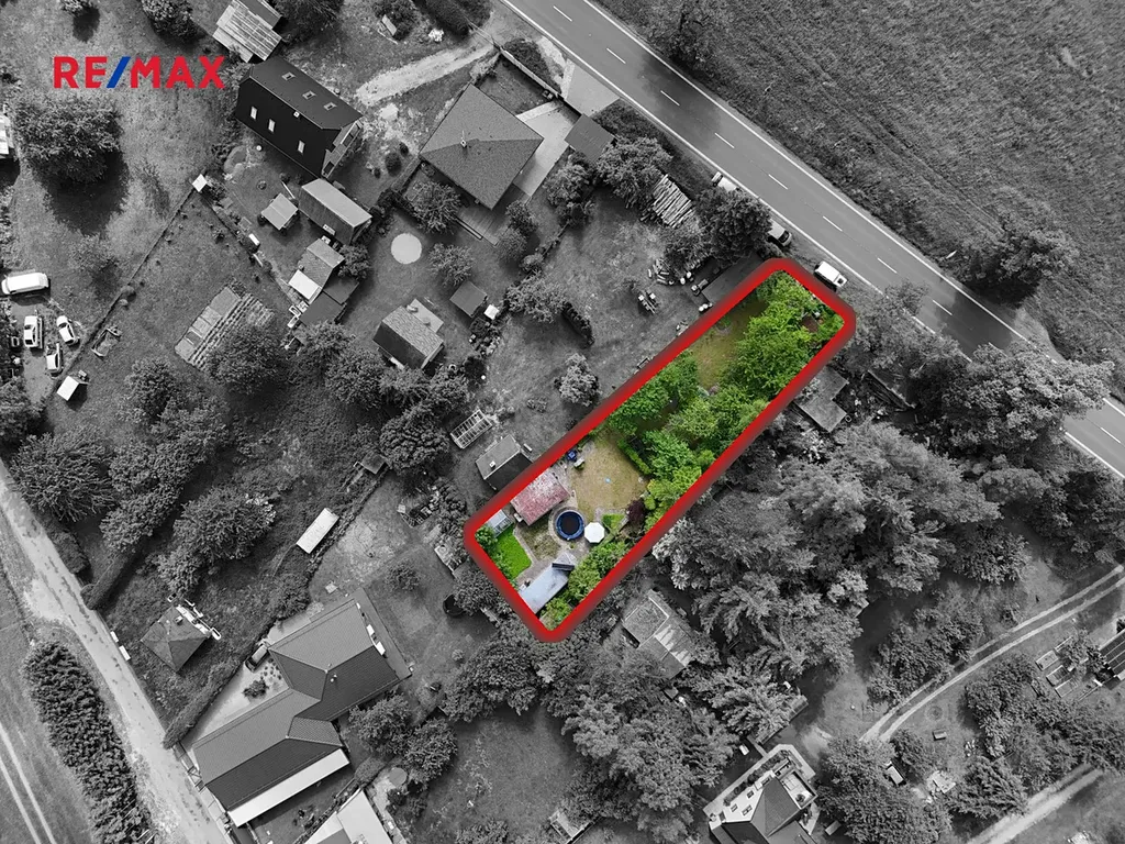 Plocha je 666 m2. Zahrada je současným majitelem využívaná k rekreaci - je zde malá chatka, bazén, sklad nářadí, ovocné stromy, záhony. Příjezd je z hlavní silnice.
