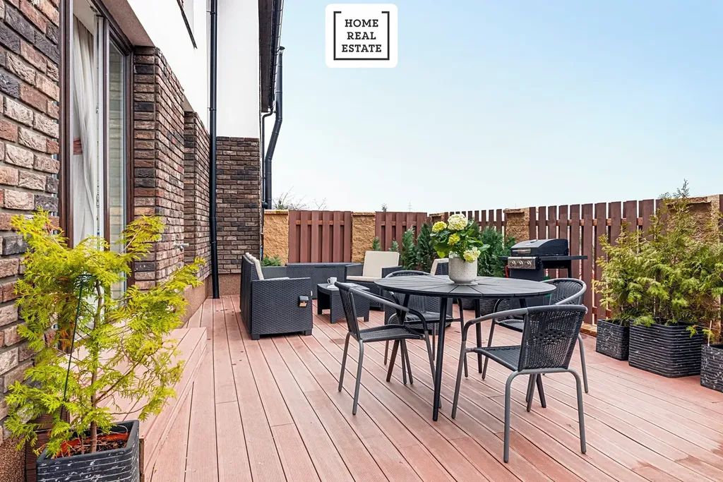 Tento rodinný dům o dispozici 4+KK se nachází na pozemku o celkové výměře 201 m² a zahrnuje dvě parkovací stání před domem, zahrádku o velikosti přibližně 20 m² a terasu o rozloze cca 50 m².