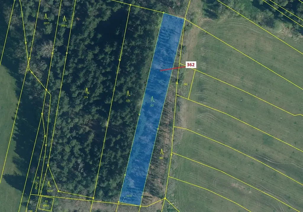 Lesní pozemek o výměře 2498 m2, parcelní číslo 362, podíl 1/1, katastrální území Bukvice u Trhových Svinů, obec Trhové Sviny, obec s rozšířenou působností Trhové Sviny, okres České Budějovice, Jihočeský kraj.