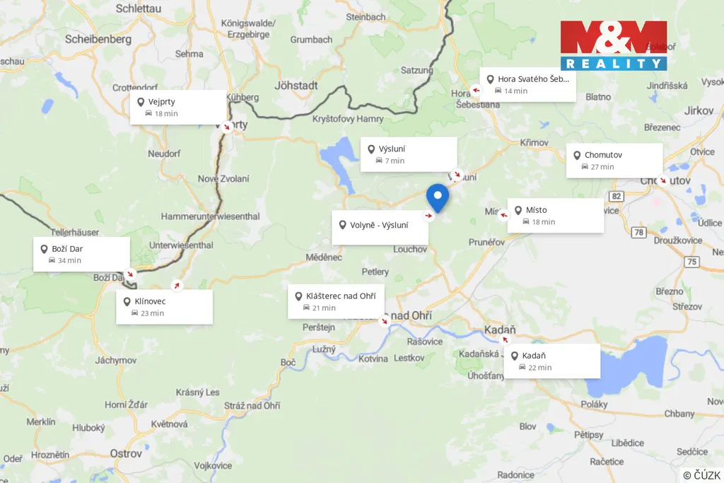 Nabízím k prodeji rovinný pozemek o rozloze 2061 m², určený pro výstavbu rodinného domu, nacházející se v klidné části obce Volyně u Výsluní. Tento pozemek je ideální volbou pro ty, kteří hledají klidné bydlení, spojené se soukromím. Okolní krajina nabízí krásné výhledy a příležitosti pro rekreační aktivity. Obec se nachází v Krušných horách, v nadmořské výšce 725 m. Najdeme zde nespočet možností vyžití ať už v zimě či v létě. Mezi významné blízké areály patří např. Klínovec, Boží Dar. Dojezdovou vzdálenost do okolních měst, najdete ve fotografiích v přiložené mapce. Vzdálenost z Prahy je cca 1,5 hodiny jízdy autem. Elektřina je kompletně zapojená, což výrazně usnadňuje zahájení stavebních prací. Co se týče vody., lze popřípadě využít vrt na vedlejším pozemku. Kanalizace není vyřešena, nutno si zajistit individuálně, např. čističkou odpadních vod. Dle územního plánu je pozemek určený k venkovskému bydlení. Zavolejte si pro více informací. S financováním můžeme pomoci.