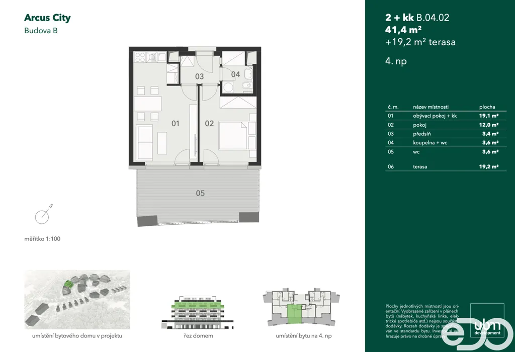 Nabízíme Vám k dlouhodobému pronájmu exkluzivní byt 2+kk 64 m² s terasou a venkovním parkovacím stáním v ulici Hasilova v novém projektu Arcus City na Praze 13.