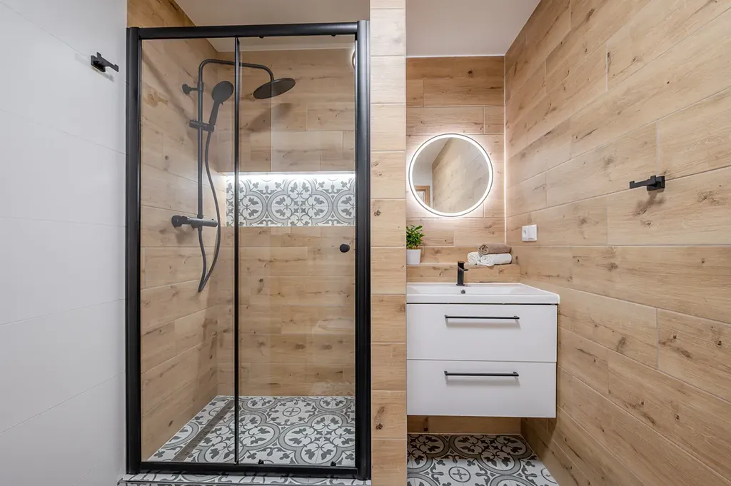 Designové prvky v kombinaci dřeva a decentního podsvícení dodávají interiéru vyjímečně příjemnou a útulnou atmosféru.