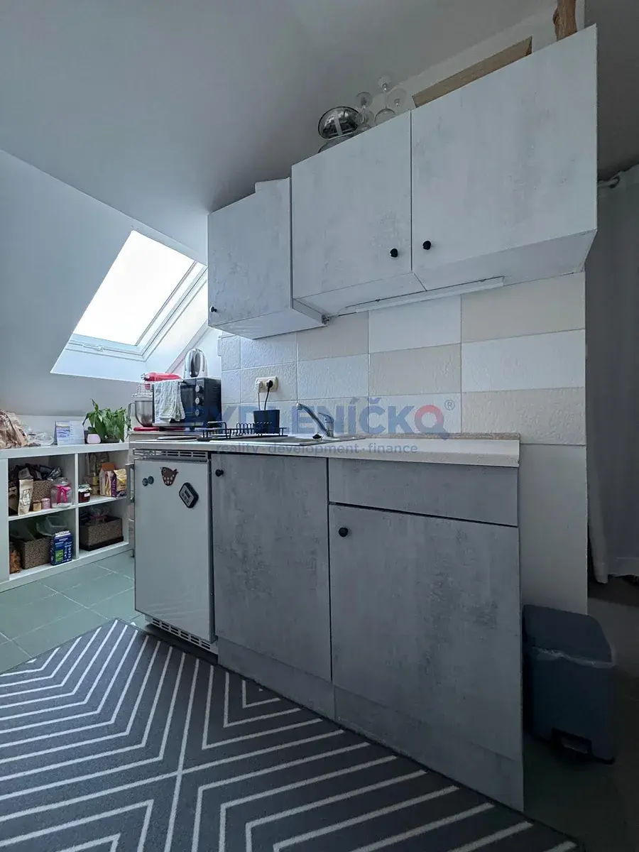 Byt je částečně vybaven – k dispozici je lednice, šatní skříň, komoda, knihovna, jídelní stůl a kuchyňská linka včetně trouby a varné desky.