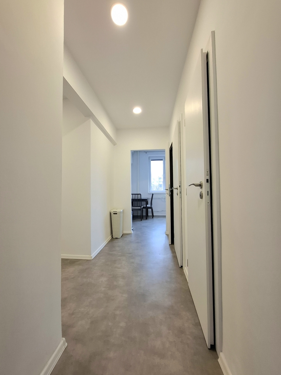 - Dispozice: Velkou výhodou jsou dva neprůchozí pokoje se samostatnými vstupy, což zaručuje soukromí všem obyvatelům. V předsíní je velká skříň s dostatkem úložného prostoru.