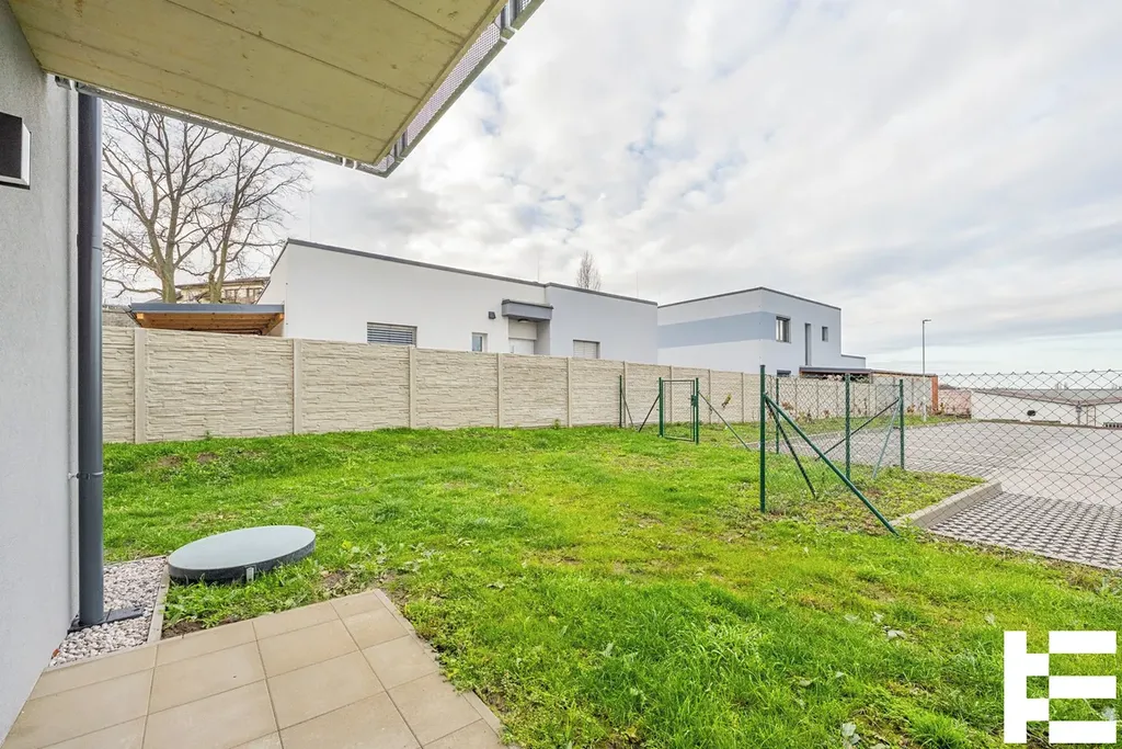 Bytová jednotka 2+kk o podlahové ploše 60,24 m² (dle vyhl. 366/2013 Sb.) se zahradou (122,94 m²) , která se nachází ve 1. NP a je členěná na vstupní chodbu (8,56 m²), obývací pokoj + kk (23,07 m²), ložnici (12,57 m²) koupelnu (5,78 m²) a sklep.