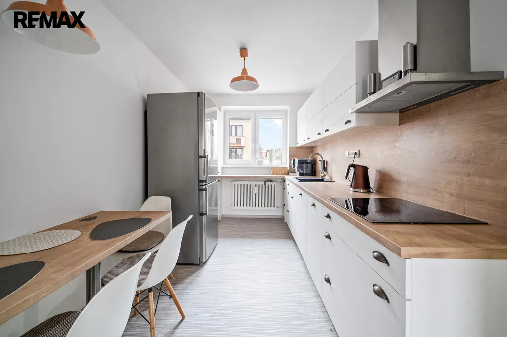Ve výhradním zastoupení společnosti RE/MAX Future nabízíme k prodeji moderní světlý byt s balkonem o dispozici 2+1, který se nachází ve 2. nadzemní podlaží cihlového bytového domu v klidné části města Dobrušky v ulici Čsl. armády. Velmi zdařile zrekonstruovaný byt o celkové podlahové ploše 68 m2 (včetně 2 sklepů - 12,1 m2 a balkonu 2,36 m2) a užitné ploše 54 m2 má následující dispozici - kuchyň, obývací pokoj, pokoj, chodbu, koupelnu se sprchovým koutem a toaletu. V rámci kompletní a pečlivé rekonstrukce byly provedeny tyto práce: nové rozvody a omítky v celém bytě, nové podlahoviny v kuchyni a na chodbě, v pokojích renovované parkety, kompletně zrekonstruovaná koupelna, nové interiérové dveře s obložkami, zabudována moderní kuchyňská linka s vestavěnými spotřebiči přímo na míru od truhláře. Prostorná chodba je vybavena nábytkem na míru a to vestavěnou skříní a menšími skříňkami.