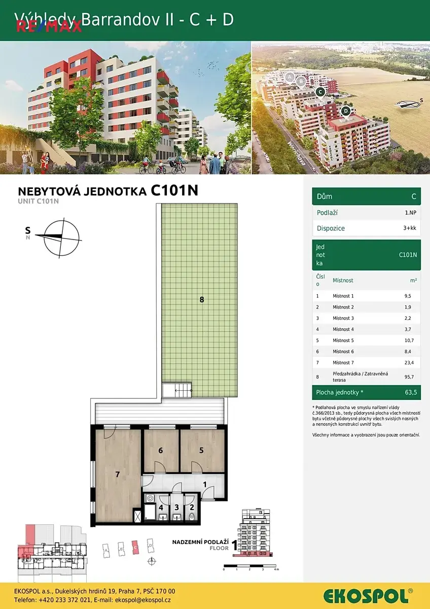 Ve výhradním zastoupení nabízíme k dlouhodobému pronájmu nový byt (Ateliér) na Fabianově ulici, Praha 5 - Barrandov. Byt má 3 místnosti: obývací pokoj s kuchyní, 2 ložnice + koupelna a WC, s užitnou plochou 63,5 m². Dále je k dispozici 1 parkovací místo v podzemní garáži a nájemce může využívat prostorný balkon a předzahrádku o rozloze 95 m².