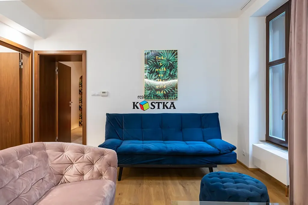 Apartmán / byt je o dispozici 2kk. Obývací pokoj s kuchyňským koutem je tak velký tak akorát, ložnice je prostorná s původní klenbou. V koupelně najdete sprchový kout a toaletu. Dubové podlahy, kvalitně vybavená koupelna a značkové spotřebiče v kuchyni .....zde se na ničem nešetřilo.
