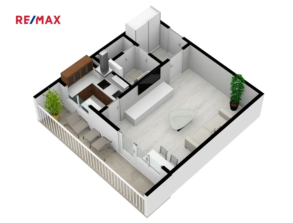 ✅ Hlavními dveřmi vstoupíte do chodby, kde je vpravo vestavěná skříň a prostor pro chladničku. Čelně se dostanete do koupelny se sprchovým koutem, umyvadlem a WC. Dveřmi vlevo vejdete do pokoje, kde je instalováno mezipatro pro spaní. Z pokoje se dostanete do kuchyňského koutu s elektrickým sporákem a linkou s dřezem. Nebo balkonovými dveřmi vyjdete na prostornou lodžii, kde si dáte oblíbenou kávu nebo skleničku vína.