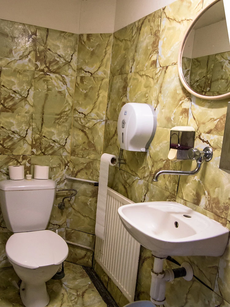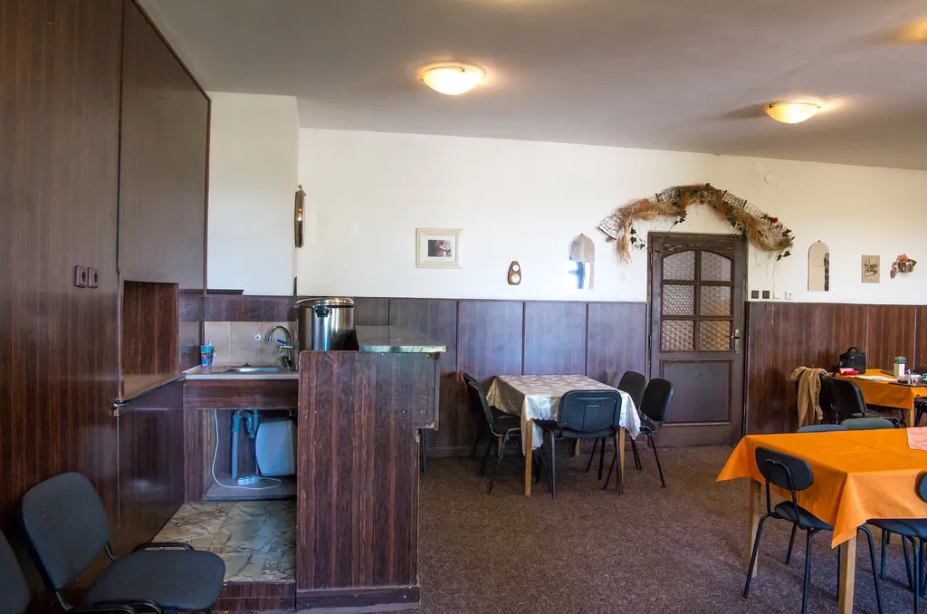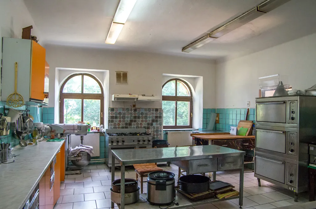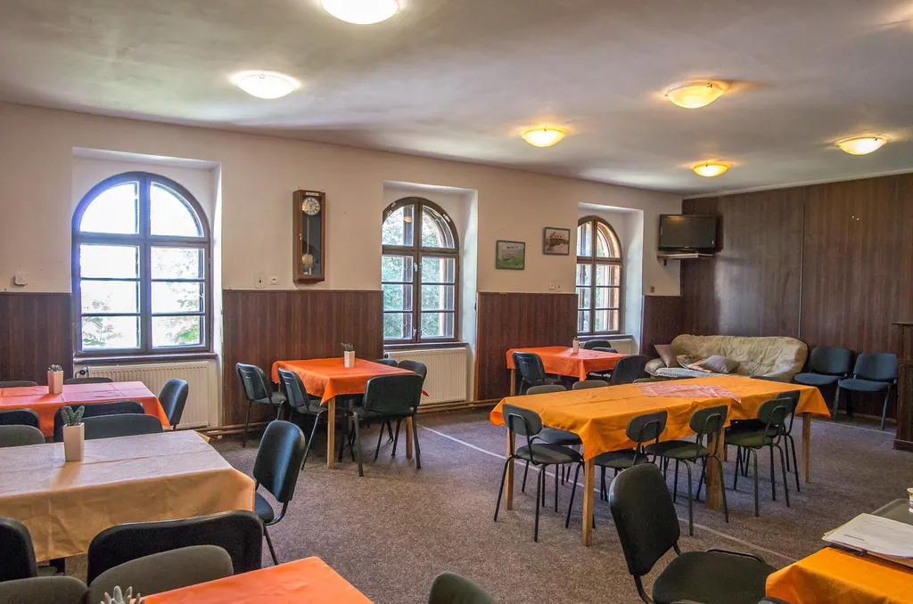 V přízemí domu se nachází vybavená kuchyně, kuchyňka s krbovými kamny, jídelna s kapacitou 45 míst. Je zde sociální zařízení - 4 x WC, 3x sprcha, z toho 1x sprcha s WC a další 2 sprchy jsou v umývárně s 5 umyvadly, prádelna.